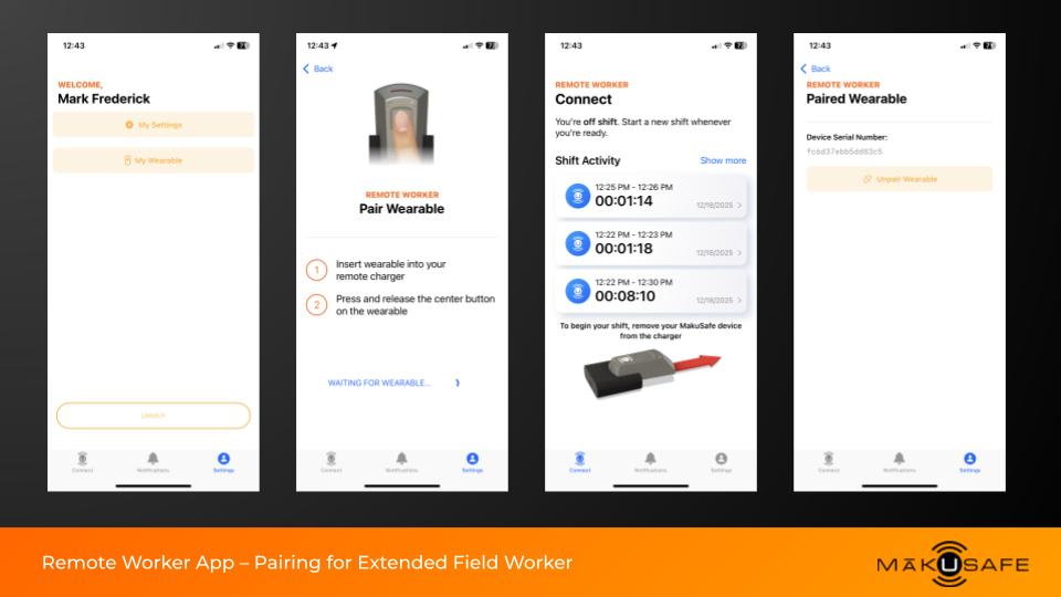 Workers simply pair the wearable with a connected mobile device using the MākuSmart app. Data and MyVoice reports are transmitted in real time when coverage is available, or stored securely until connectivity returns.