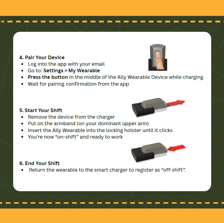 Once paired, the wearable will automatically connect to your mobile device during the workday.